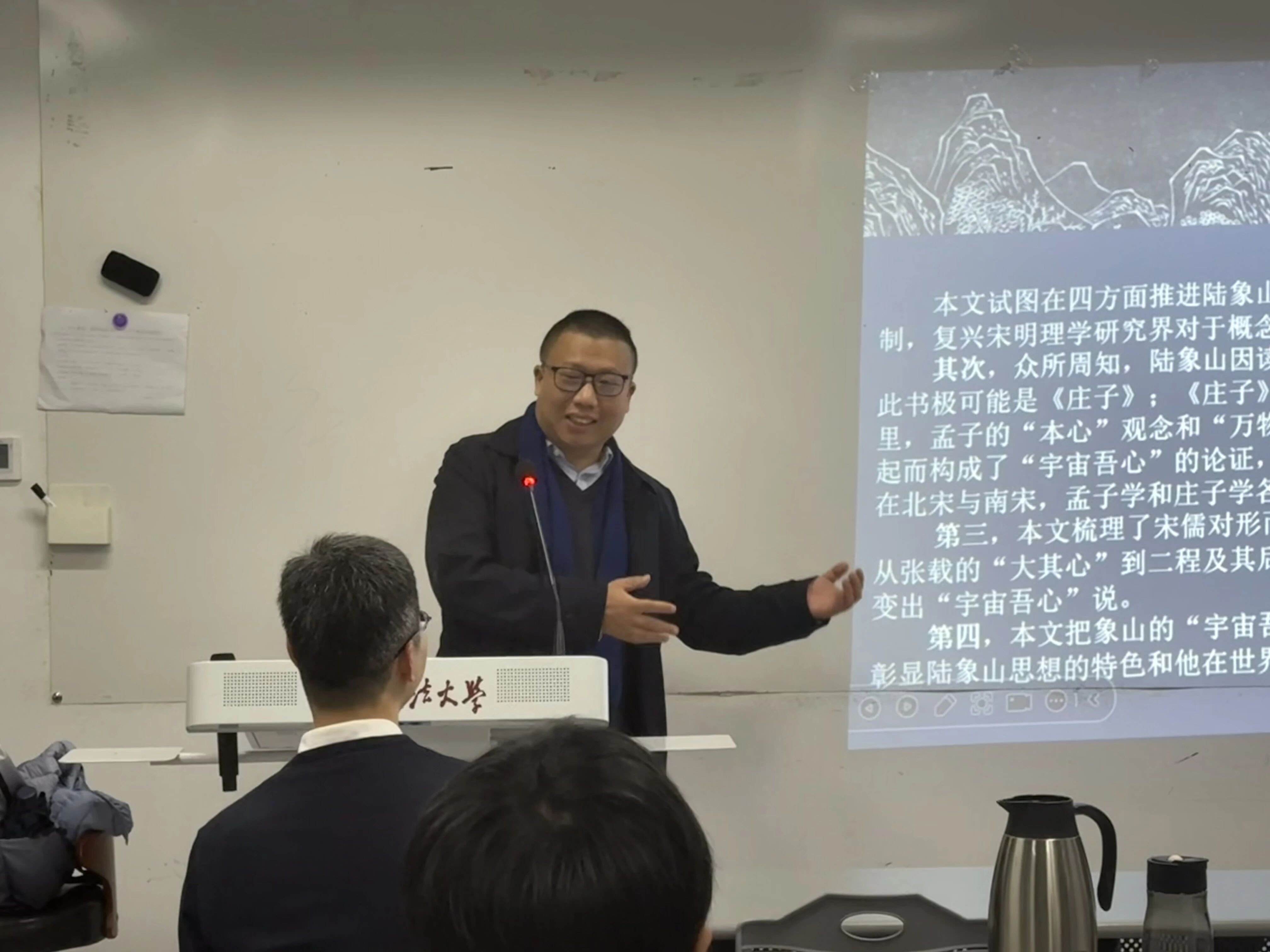 在此基础上,郑老师剖析了由此产生的研究困境与范式危机。 他首先指出,这种根植于现代新儒家的研究范式,导致了一个深刻的矛盾:陆象山的学术地位虽因新儒家的推崇而得以维系,但其思想的完整性与复杂性,却也因这一学派的理论预设而被片面化甚至误解。值得注意的是,这种对形而上学的忽视并非港台新儒家的独有现象。在大陆学界,以侯外庐先生主编的《宋明理学史》为代表的学术传统,曾长期将陆王心学简单比附为贝克莱式的主观唯心主义,这构成了另一种形态的解读偏差。郑老师强调,尽管这两种旧的解读模式如今均已退潮,但能够全面、准确把握陆象山思想精髓的新研究范式却尚未建立,这致使该领域研究目前处于一种“旧的已退,新的未来”的学术真空状态。